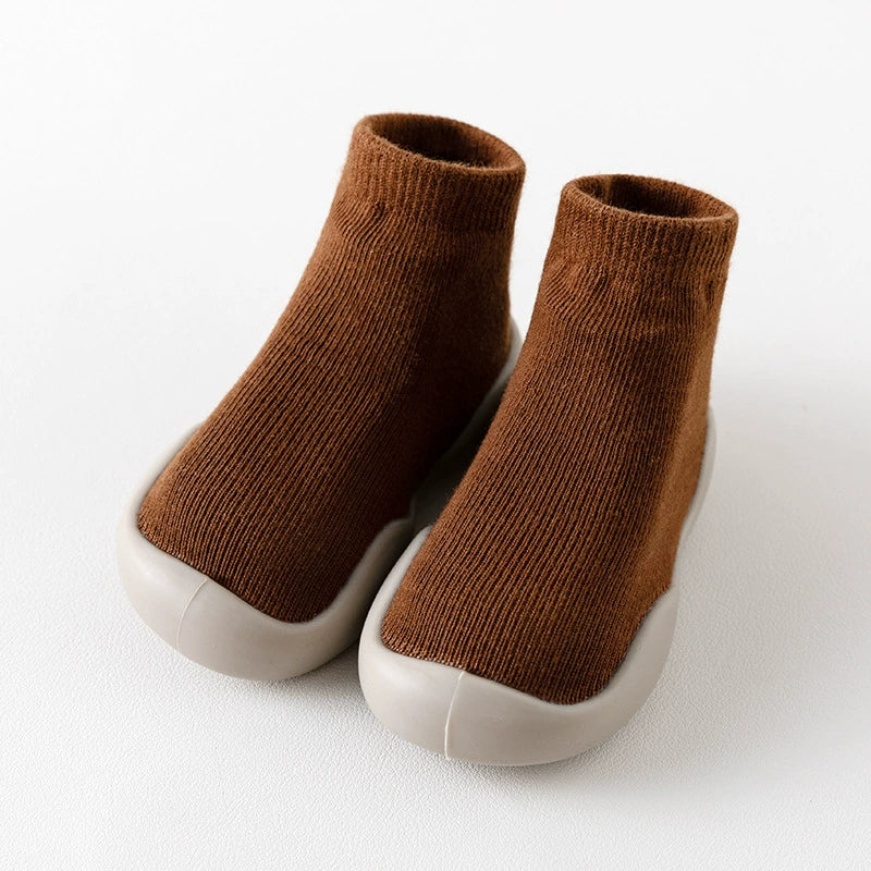 El diseño tipo calcetín se ajusta suavemente sin apretar y no se caen con el movimiento. Muchas mamás nos dicen que por fin encontraron algo que su bebé no intenta quitarse.